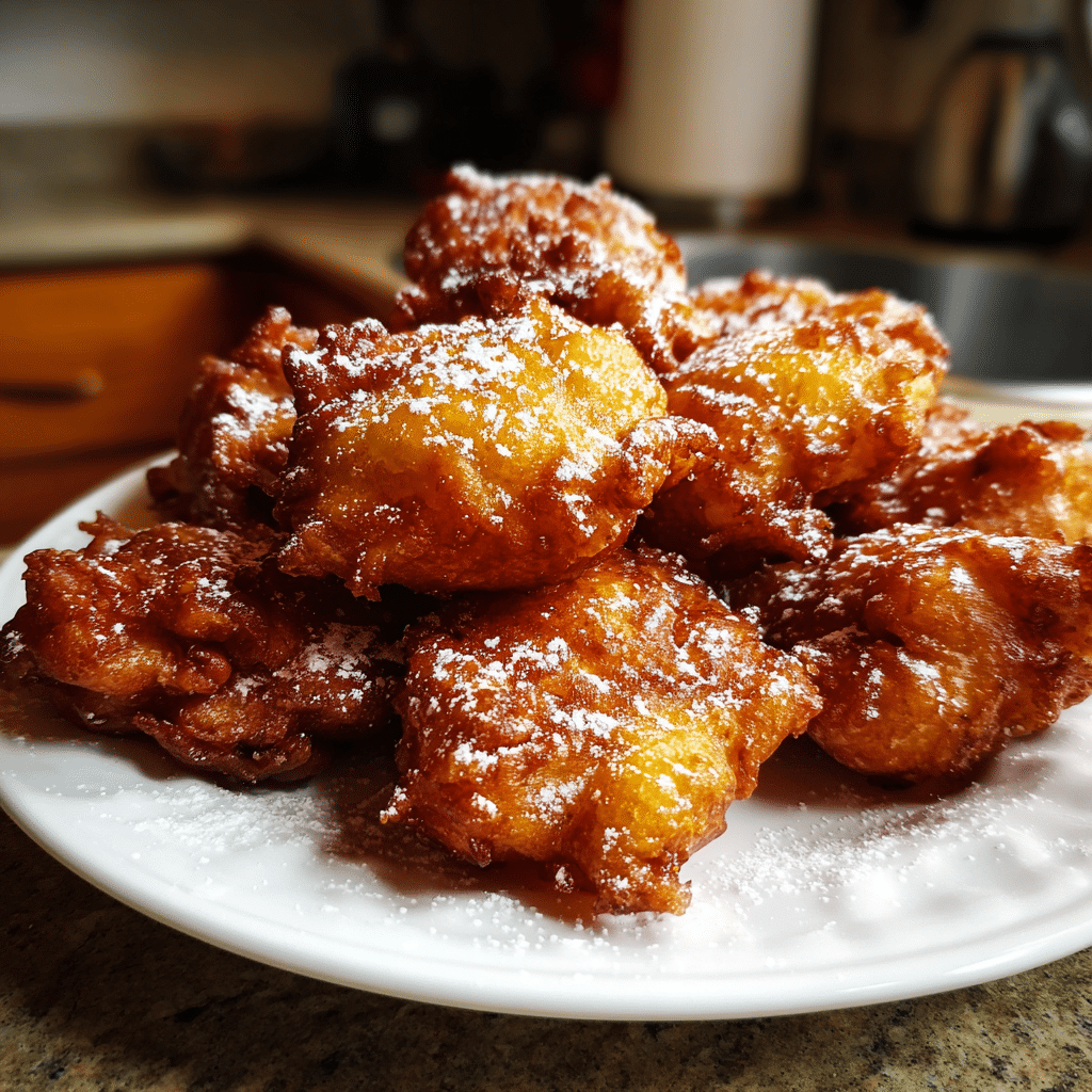 Heat a shallow layer of oil in a skillet over medium heat. Once the oil is hot, drop spoonfuls of batter into the pan, taking care not to overcrowd it. Fry each fritter until the bottom is golden brown, then flip and cook the other side. This usually takes two to three minutes per side. Transfer the cooked fritters to a paper towel–lined plate to drain excess oil. Serve warm, dusted with powdered sugar or drizzled with honey. Allow them to cool slightly before serving to ensure the texture settles properly.