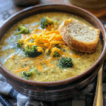 A creamy, comforting soup made with fresh broccoli, sharp cheddar cheese, and a rich, velvety base — perfect for a cozy lunch or dinner.