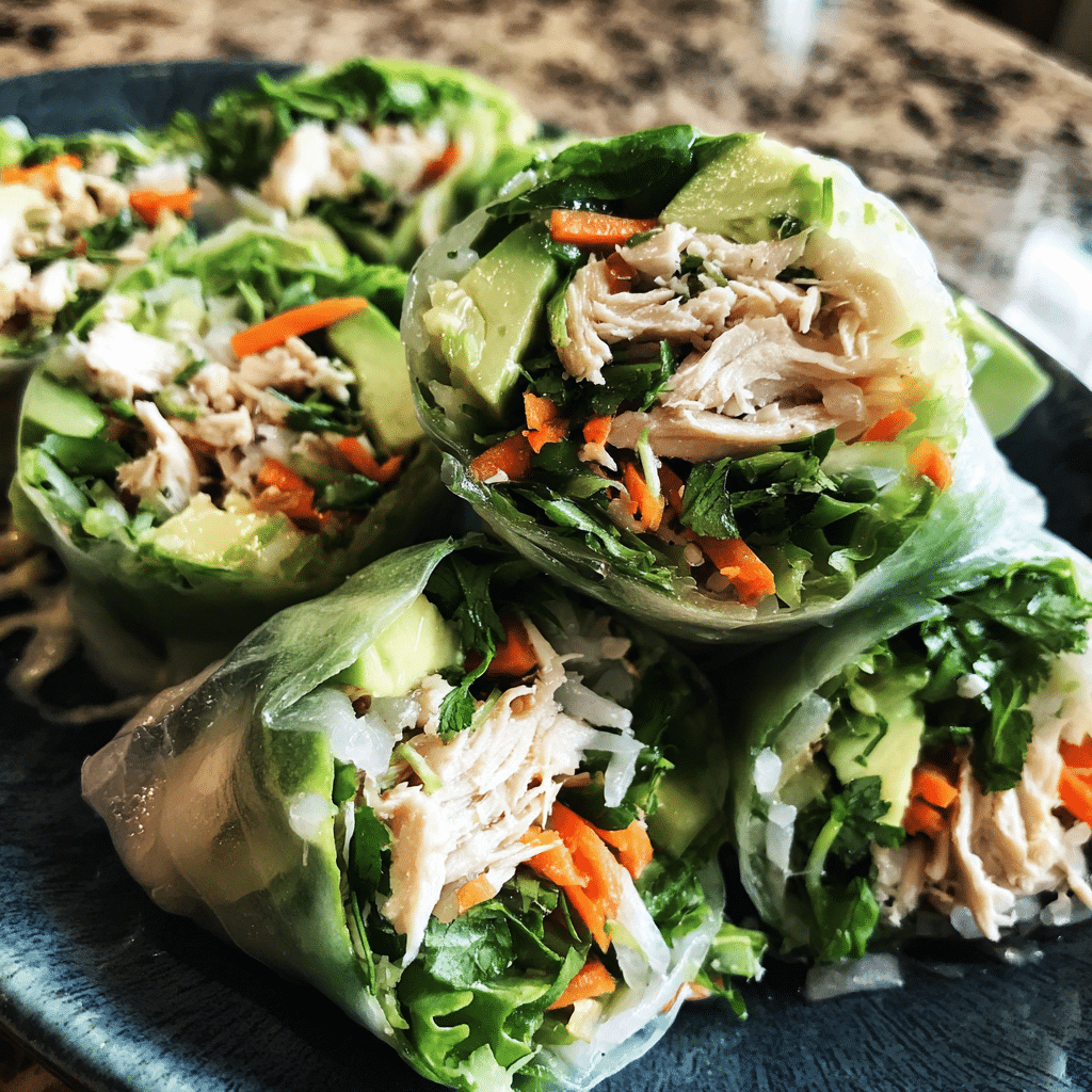 A fresh and creamy chicken salad wrapped in soft tortillas with avocado, herbs, and crunchy veggies—perfect for lunch, snacks, or meal prep.