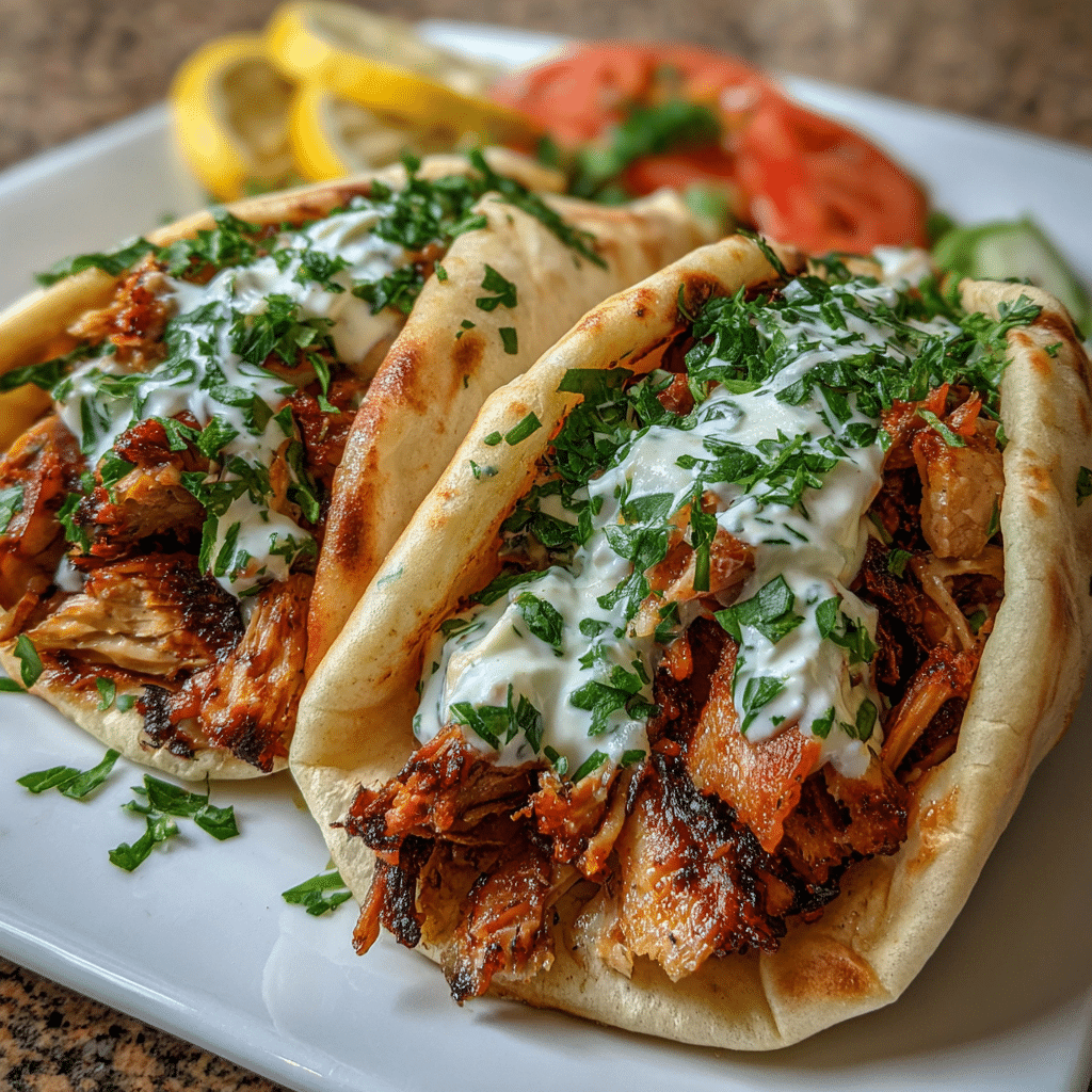 Authentic and flavorful chicken shawarma marinated in warm Middle Eastern spices, roasted until juicy, and served with a creamy homemade garlic sauce.