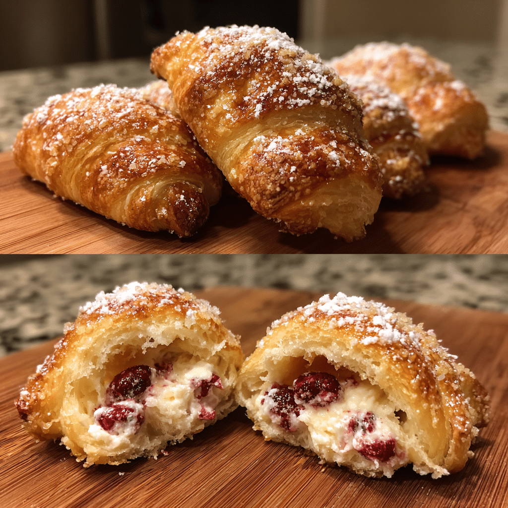 Flaky crescent dough bites filled with a creamy sweet cream cheese mixture and tangy cranberry sauce, perfect for holidays or easy appetizers.
