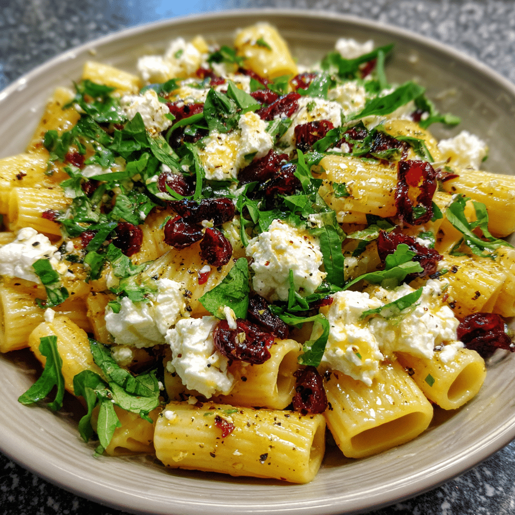 Creamy Feta and Cranberry Rigatoni Salad with Lemon Vinaigrette is a refreshing yet comforting dish that balances creamy, tangy, and slightly sweet flavors beautifully. The salty feta contrasts perfectly with chewy cranberries, while the lemon vinaigrette adds brightness that keeps the salad light and lively. It is the kind of recipe that works equally well as a side dish or a satisfying main, especially when you want something flavorful without feeling heavy.
