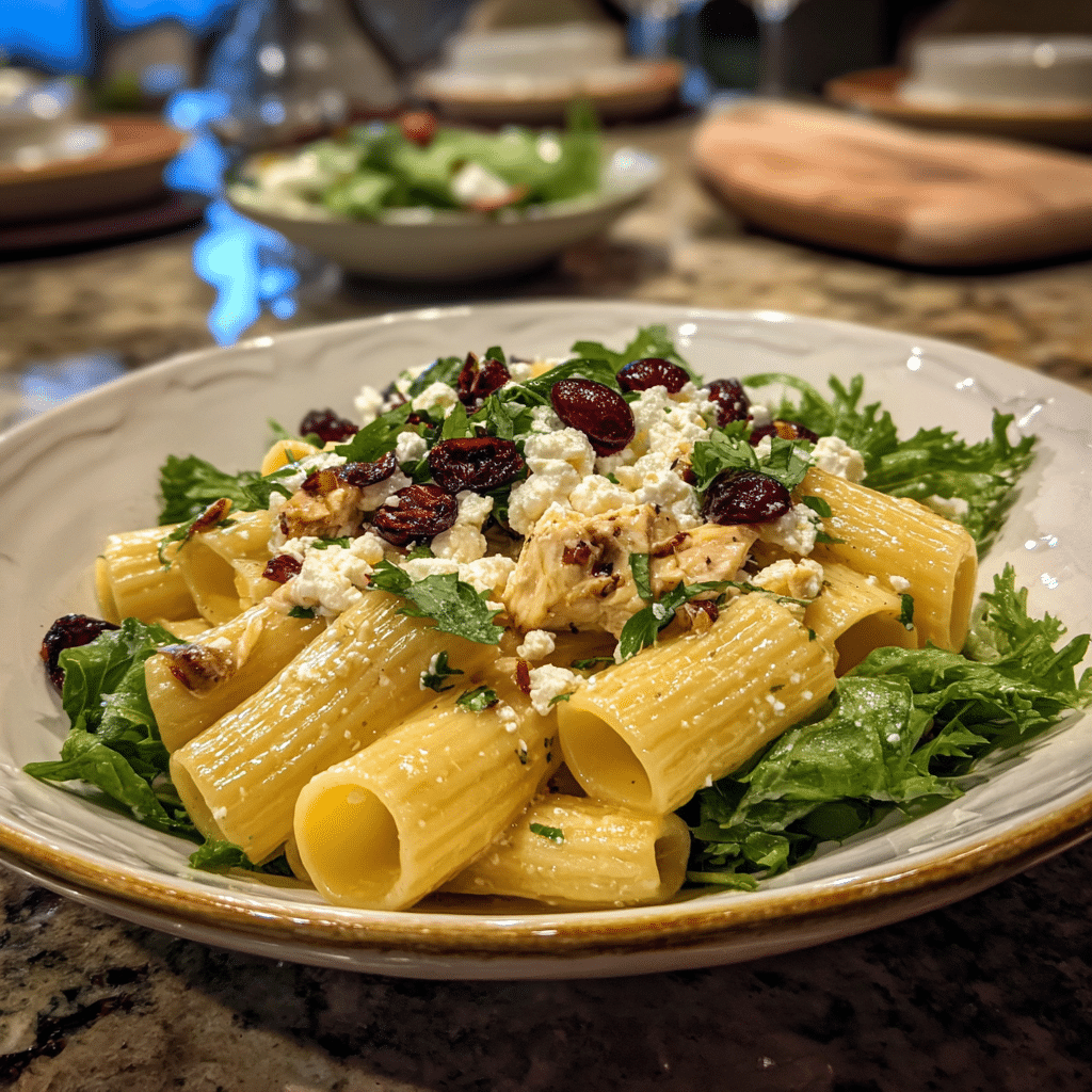 Creamy Feta and Cranberry Rigatoni Salad with Lemon Vinaigrette