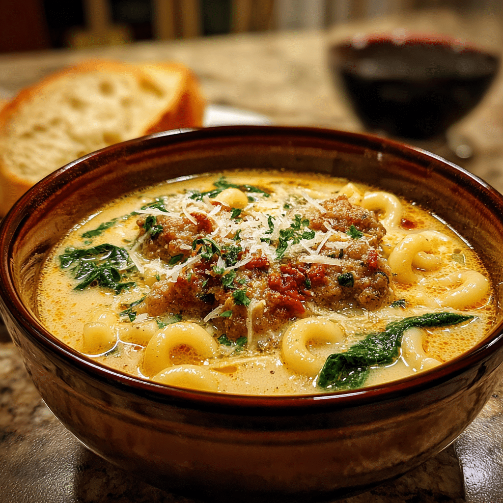 A rich and cozy soup featuring Italian sausage, tender ditalini pasta, and vegetables in a creamy Parmesan-infused broth — a comforting bowl that’s full of flavor and perfect for any night of the week.