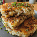 These Crispy Mashed Potato Pancakes are everything you love about comfort food—crispy, golden, and full of flavor. The creamy mashed potatoes form a perfect base, while the savory meat filling adds richness and depth. They’re easy to make with simple ingredients and are ideal for using up leftovers creatively. You can customize the filling with beef, chicken, or even mushrooms for a vegetarian twist. Serve them with sour cream, gravy, or a tangy dipping sauce for a meal that’s as impressive as it is comforting.