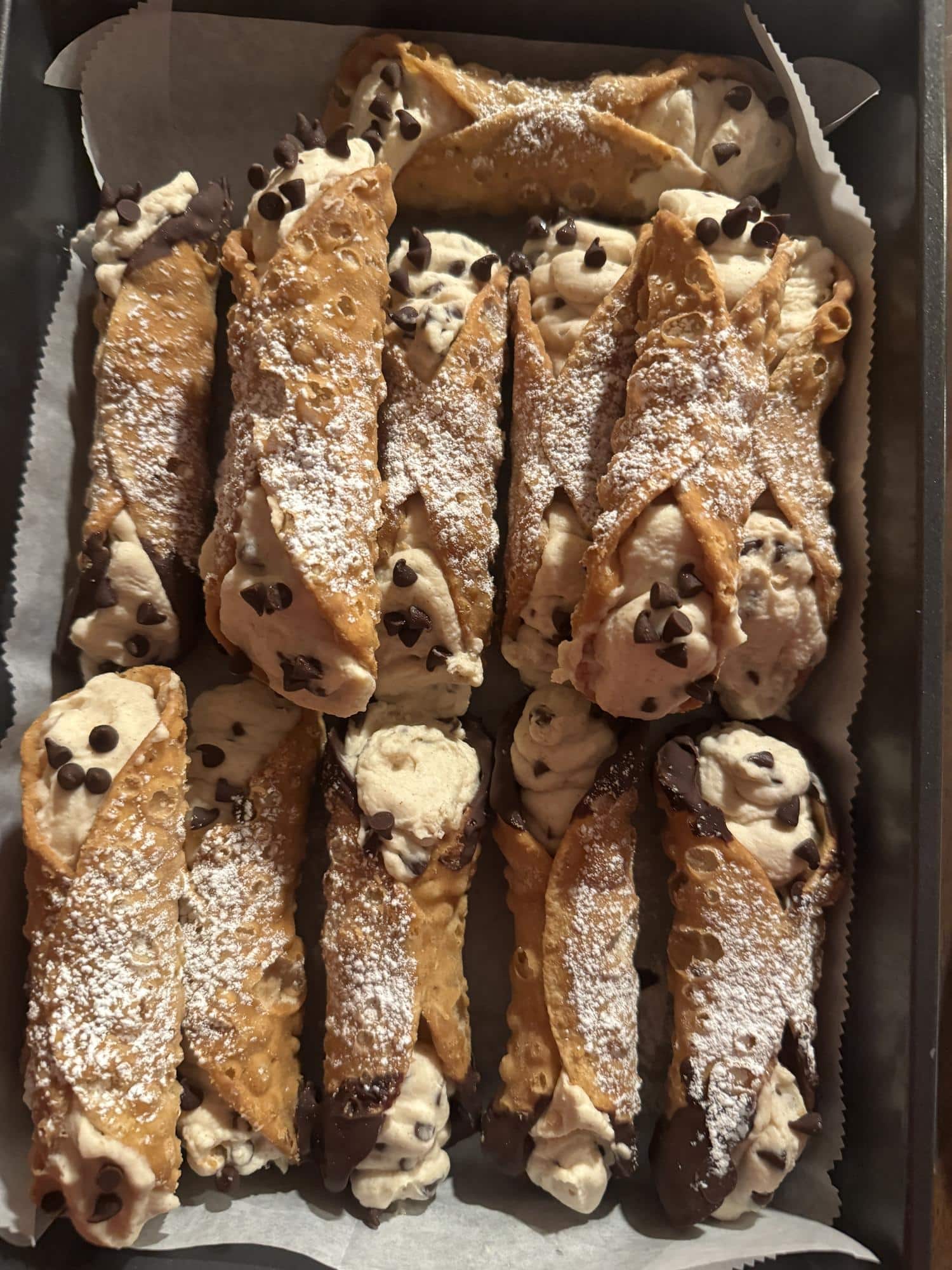 Mini chocolate chips provide bursts of chocolate throughout the dessert and reflect the traditional cannoli filling.