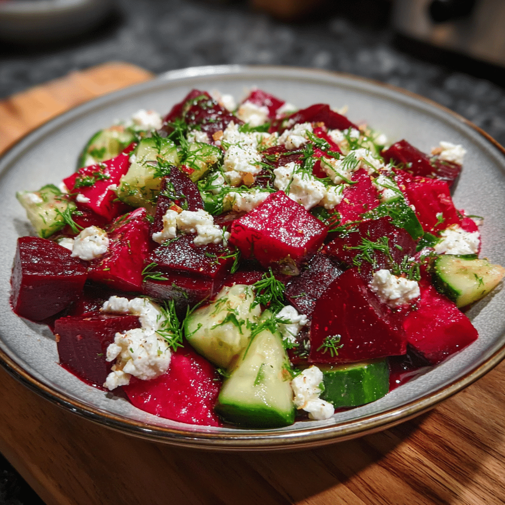 A simple, refreshing beet salad tossed with crisp cucumbers, creamy feta, and a light vinaigrette—vibrant, healthy, and ready in minutes.