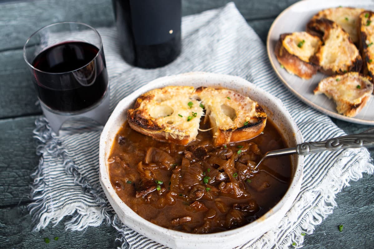 If you prefer oven-finished soup, ladle into oven-safe bowls, top with toast and cheese, and broil until bubbling for a classic presentation.