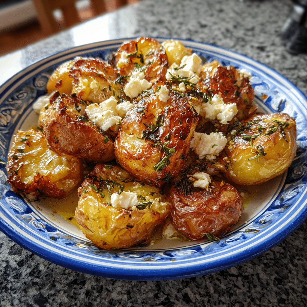 Greek Feta Roast Potatoes with Lemon, Garlic, and Herbs