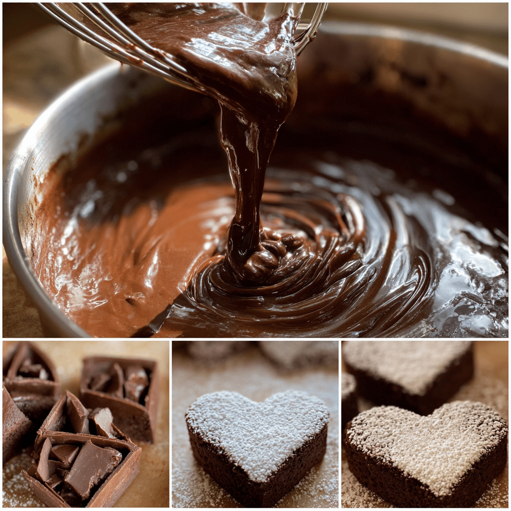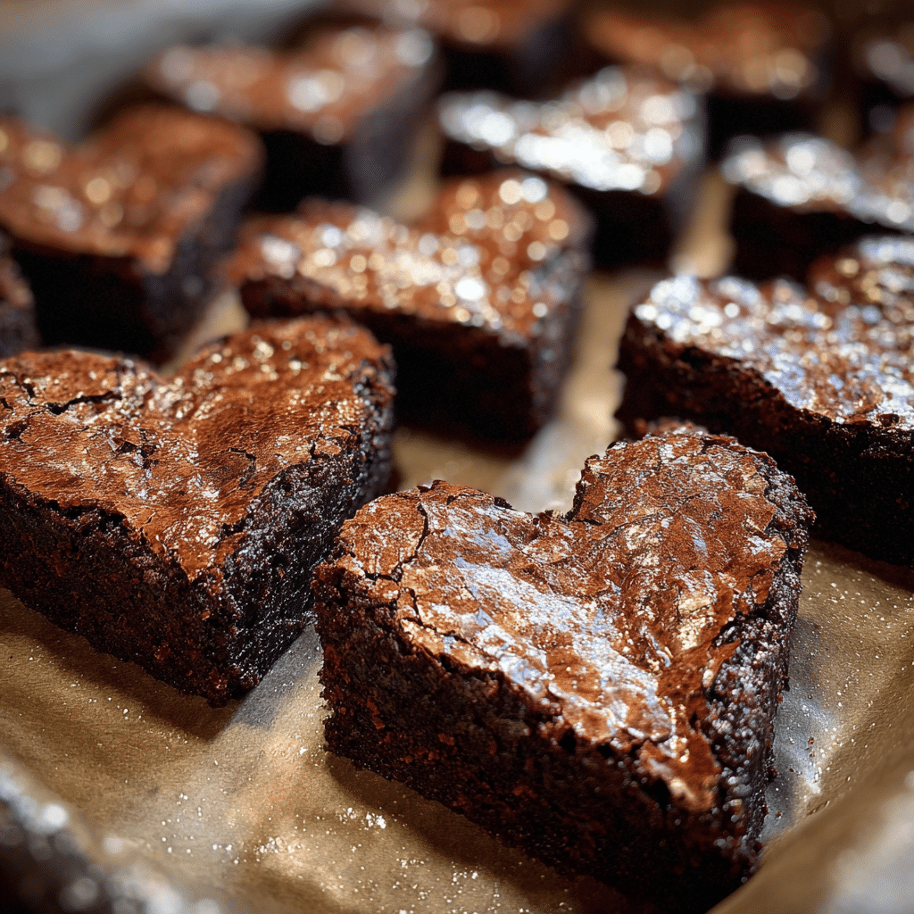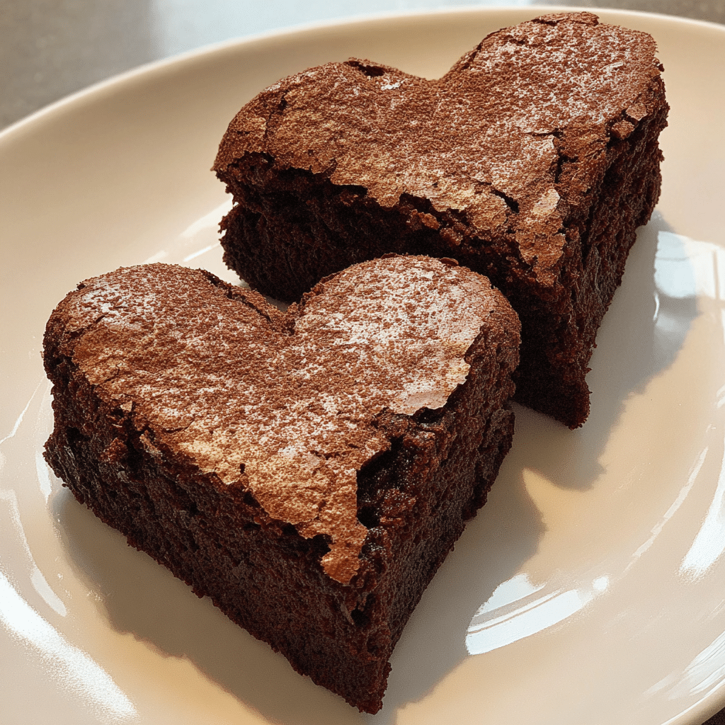 Fudgy heart-shaped brownies with a rich chocolate flavor, perfect for Valentine’s Day or any romantic celebration.