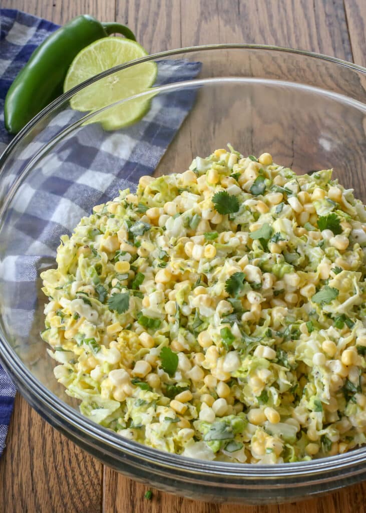 - In a large bowl, combine coleslaw mix, corn, and diced jalapeño.