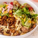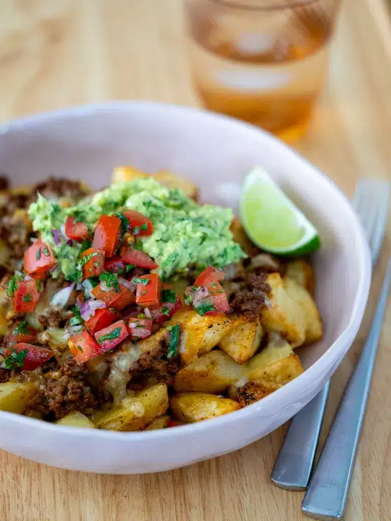 Loaded Potato Taco Bowl is a satisfying mashup of two comfort food favorites: crispy seasoned potatoes and classic taco toppings. I started making this bowl when I wanted something hearty and filling without relying on tortillas or rice, and it quickly became a repeat favorite. The potatoes act as a warm, flavorful base that soaks up spices beautifully, while the taco-inspired toppings add freshness, texture, and bold contrast. What makes this dish especially appealing is its flexibility. You can keep it simple or pile it high with toppings depending on your mood or what you have on hand. It works just as well for a casual weeknight dinner as it does for meal prep lunches. Rich, savory, and deeply satisfying, this bowl delivers big flavor in every bite.