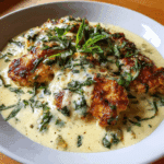 Mozzarella chicken in basil cream sauce is one of those dishes that looks restaurant-quality but comes together easily at home. Juicy chicken breasts are seared to perfection, then simmered in a luscious sauce made with cream, garlic, and fresh basil, all topped with gooey, melted mozzarella. I first made this recipe for a weeknight dinner, and it instantly became a family favorite—rich, comforting, and full of flavor. The combination of creamy sauce and melted cheese feels indulgent, yet it’s surprisingly quick to make. You can pair it with pasta, mashed potatoes, or a crisp green salad for a balanced meal. I’ve even tried using light cream instead of heavy cream, and it still turned out wonderfully smooth. Whether you’re cooking for a special occasion or just want to elevate your weeknight dinner, this recipe delivers every time.