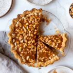 Sprinkle the salted peanuts evenly on top, pressing them lightly into the caramel so they adhere. Refrigerate the pie for at least 4 hours or until fully set before slicing.
