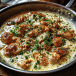 Savory Garlic Chicken in a Creamy Sauce is the kind of dish that feels both elegant and wonderfully comforting. Tender chicken simmered in a velvety garlic-infused sauce creates a meal that is rich enough for special occasions yet simple enough for a weeknight dinner. What I love most about this recipe is its adaptability. I once tried it using almond milk in place of traditional cream, and although the sauce was lighter, it still had beautiful body and flavour. This dish pairs effortlessly with pasta, rice, or mashed potatoes, making it a versatile addition to your cooking repertoire. With minimal equipment and just a handful of ingredients, it delivers deep flavour without long hours in the kitchen. Whether you are preparing supper for family or hosting guests, this creamy garlic chicken provides warmth, aroma, and an impressive finish that feels far more elaborate than the effort it requires.