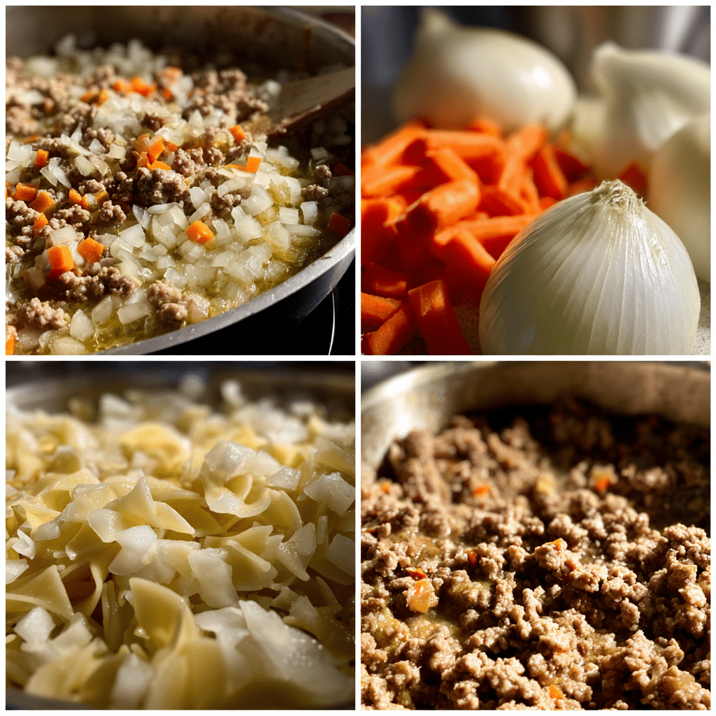 - Add onion, carrot, and celery, and sauté until soft and fragrant.